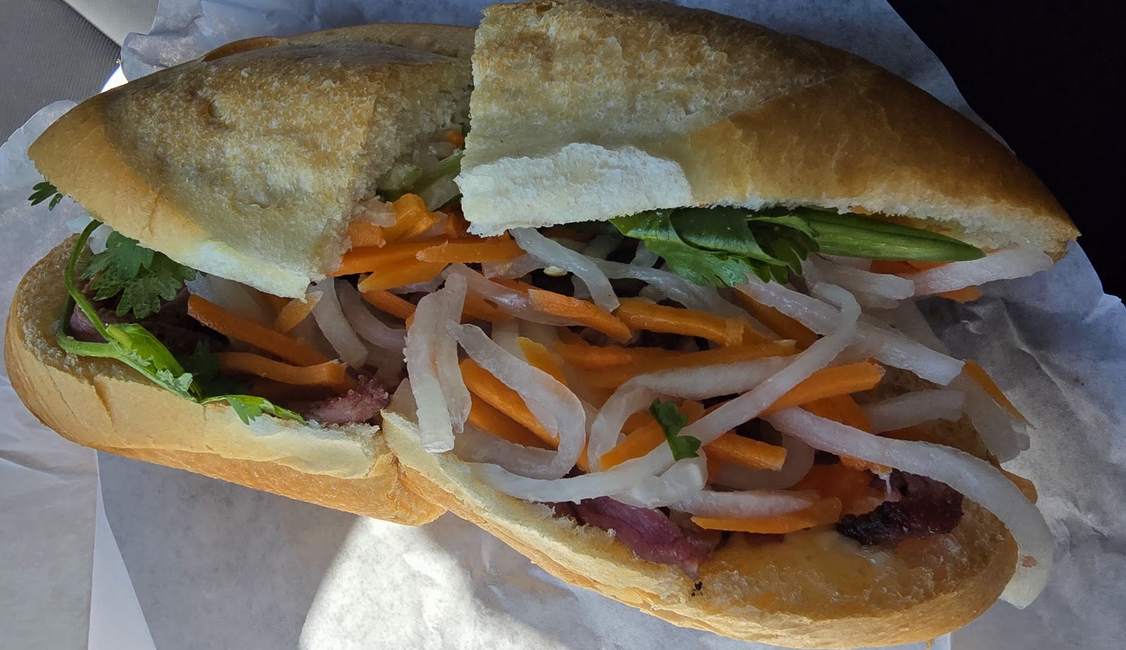 "The BBQ pork banh mi sandwiches are really good. They are more on the small side. Definitely can eat two. The pork spring rolls are delicious. They are the perfect salad to eat like a burrito. One pack comes with two. Very filling..."